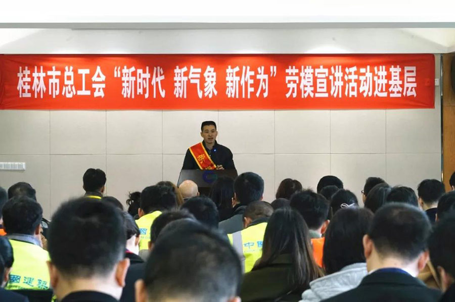 恰逢全國上下學(xué)習(xí)貫徹習(xí)近平總書記同中華全國總工會(huì)新一屆領(lǐng)導(dǎo)班子成員重要講話精神、隆重慶祝改革開放40周年和自治區(qū)成立60周年之際,11月22日上午,新城投資集團(tuán)工會(huì)委員會(huì)在新城商務(wù)酒店辦公樓十樓會(huì)議廳舉辦了“新時(shí)代,新氣象,新作為”勞模宣講活動(dòng)。市總工會(huì)黨組成員、財(cái)貿(mào)工會(huì)主席劉寶成等領(lǐng)導(dǎo)以及市總工會(huì)代表、新區(qū)管委黨群團(tuán)代表、市文投集團(tuán)代表、新城投資集團(tuán)代表及中建八局二公司廣西公司桂林基地項(xiàng)目代表參加了宣講會(huì),會(huì)議由新城投資集團(tuán)黨支部委員、工會(huì)主席譚力源主持。