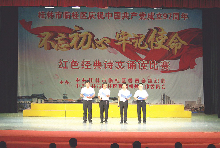 新城投資集團黨支部參加桂林市臨桂區(qū)慶祝中國共產(chǎn)黨成立97周年“不忘初心·牢記使命”紅色經(jīng)典詩文誦讀比賽