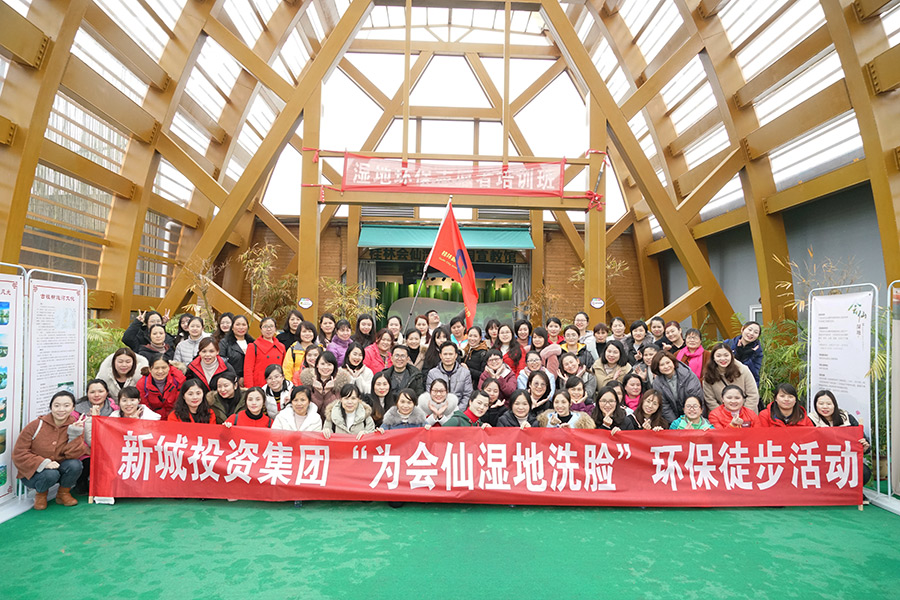 圖為“為會(huì)仙濕地洗臉”環(huán)保徒步活動(dòng)合影