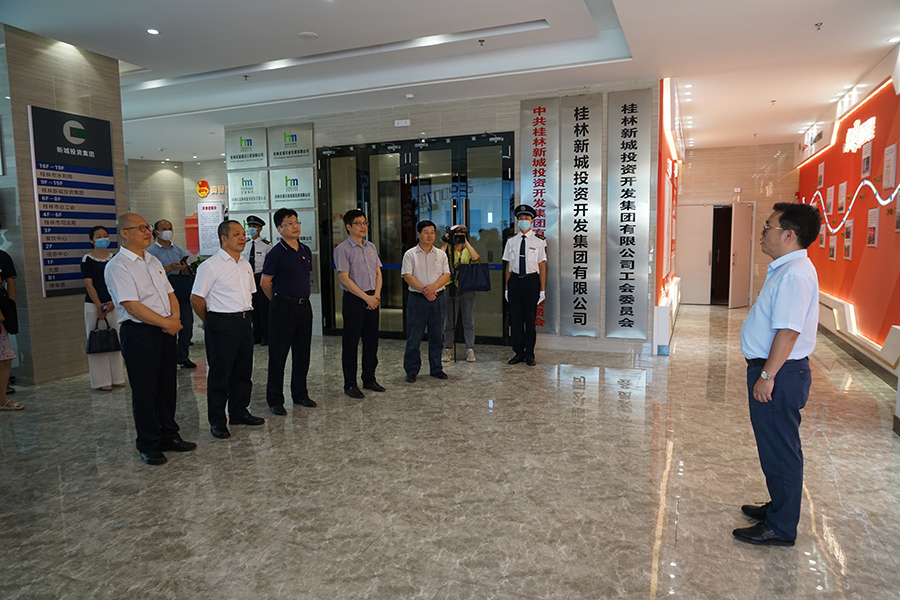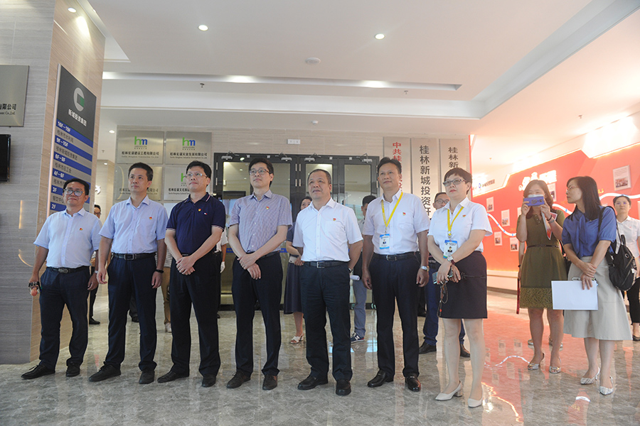 臨桂新區(qū)工委委員、管委會(huì)副主任文杰,市國(guó)資委黨委委員、組織部部長(zhǎng)趙慶華,新區(qū)工委組織人事部部長(zhǎng)梁利,集團(tuán)黨總支委員陪同參觀。