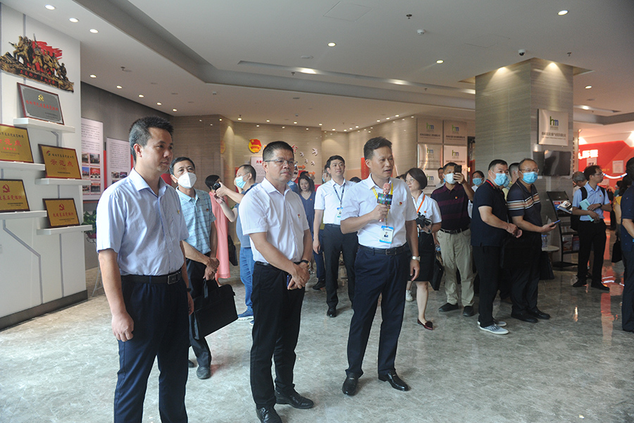 上圖為文杰接待參觀團(tuán),鄧仁友介紹集團(tuán)黨建經(jīng)驗(yàn)