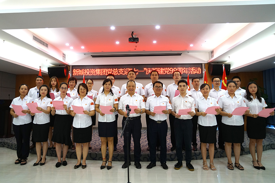 為進(jìn)一步激發(fā)基層黨組織活力,激勵(lì)廣大黨員干部繼承和發(fā)揚(yáng)黨的光榮傳統(tǒng),增強(qiáng)黨員的光榮感、使命感,7月1日,新城投資集團(tuán)黨總支舉辦了迎“七一”慶祝建黨99周年系列活動?;顒佑杉瘓F(tuán)黨總支組織委員譚力源主持,全體黨員含預(yù)備黨員,發(fā)展對象,入黨積極分子共計(jì)60余人參加活動。集團(tuán)黨總支書記周道林、副書記鄧仁友及黨總支委員均以普通黨員身份參加活動。