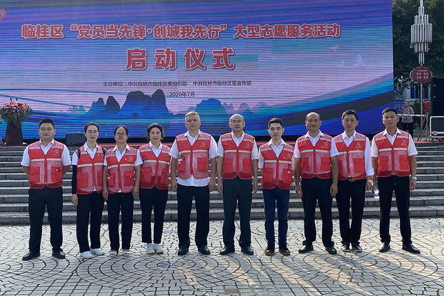 7月14日,新城投資集團(tuán)黨總支組織第一支部、第二支部黨員志愿者趙建斌、粟大鳴、蒙妙云、謝籍浩、袁靜、唐緣蒙、徐新輝、侯麗麗、鄧映洲、龍海東十位同志參加了由臨桂區(qū)委組織部、宣傳部在臨桂區(qū)金山廣場主辦的“黨員當(dāng)先鋒,創(chuàng)城我先行”大型志愿服務(wù)活動啟動儀式。區(qū)委副書記王鳳玲現(xiàn)場致辭,拉開了志愿服務(wù)活動啟動儀式帷幕,為桂林市創(chuàng)建全國文明城市助力。