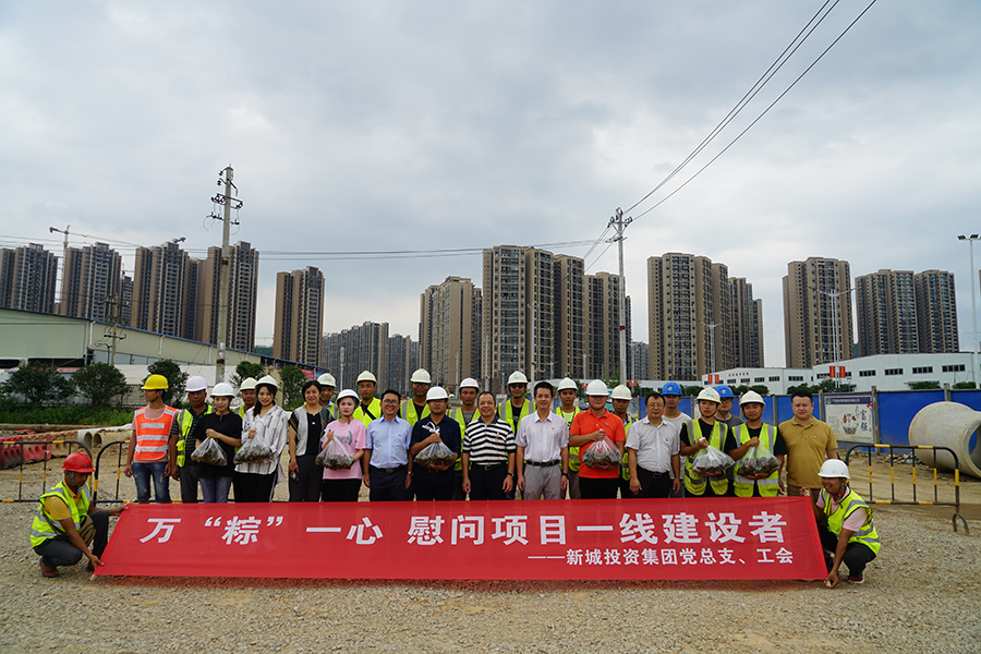 上午,新城投資集團(tuán)黨總支、工會(huì)還開展了“萬'粽'一心,共創(chuàng)文明城”端午節(jié)慰問項(xiàng)目一線建設(shè)者活動(dòng),臨桂新區(qū)工委委員、管委會(huì)副主任文杰,集團(tuán)黨總支書記、董事長(zhǎng)周道林率隊(duì)帶著新鮮出爐的粽子,來到西城大道南延長(zhǎng)線兩個(gè)標(biāo)段施工現(xiàn)場(chǎng),為奮斗在市政府限期完工的西城大道南延長(zhǎng)線,慰問一線的190名建設(shè)者們。