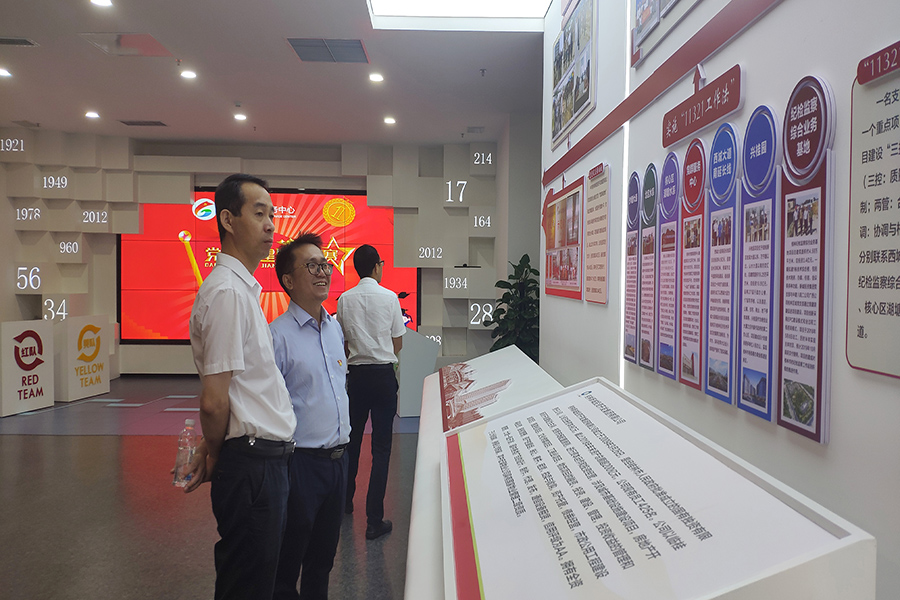 ▲調(diào)研組一行參觀集團黨建展示區(qū)