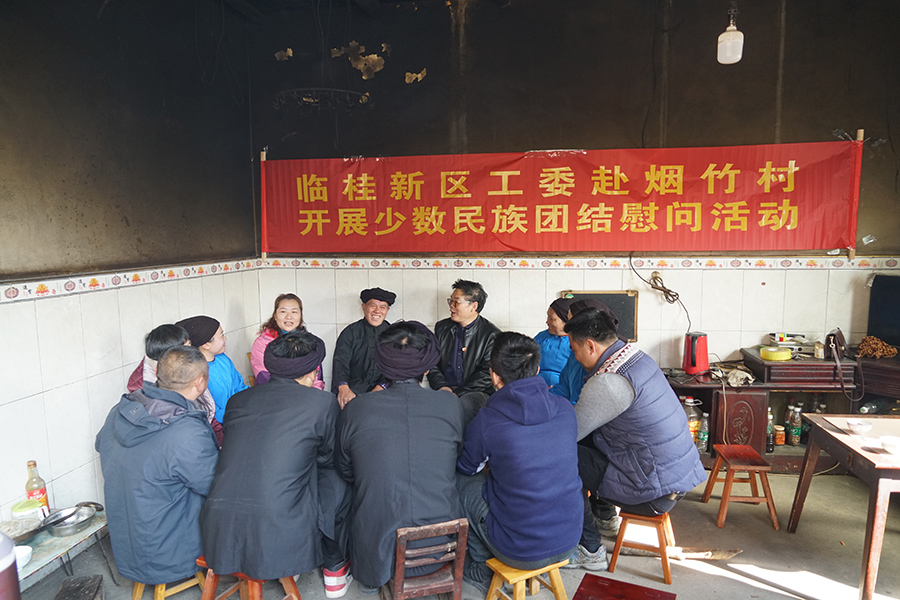 2020年12月25日,市紀委監(jiān)委駐桂林市臨桂新區(qū)管理委員會紀檢監(jiān)察組副組長唐良平,臨桂新區(qū)管委會機關黨委委員、工委組織人事部部長梁利,桂林新城投資集團黨總支委員、副總經(jīng)理張新悅等一行組成慰問組,赴資源縣兩水苗族鄉(xiāng)煙竹村慰問村兩委干部、駐村第一書記和駐村隊員,與苗族村民開展民族團結座談活動。