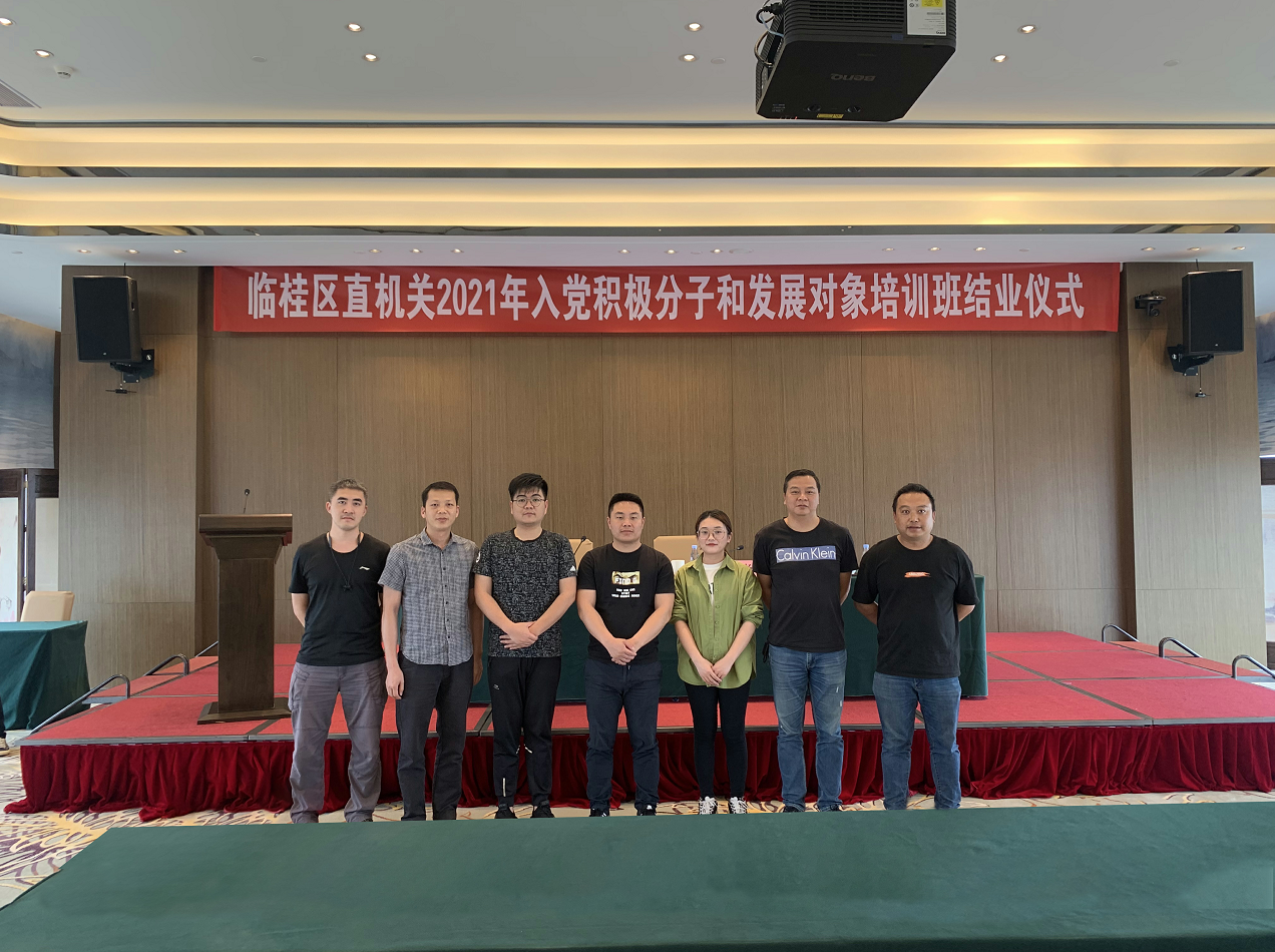 2021年5月24日--28日,臨桂區(qū)直機關(guān)第七期入黨積極分子及發(fā)展對象培訓(xùn)班在新城投資集團下屬桂林宏謀大酒店十樓會議廳開班。新城投資集團盤順民、廖靖宇、梁清淞、尹于、侯文元、張智濤、鄧玉歡等7名入黨積極分子參加培訓(xùn)班學(xué)習(xí)。