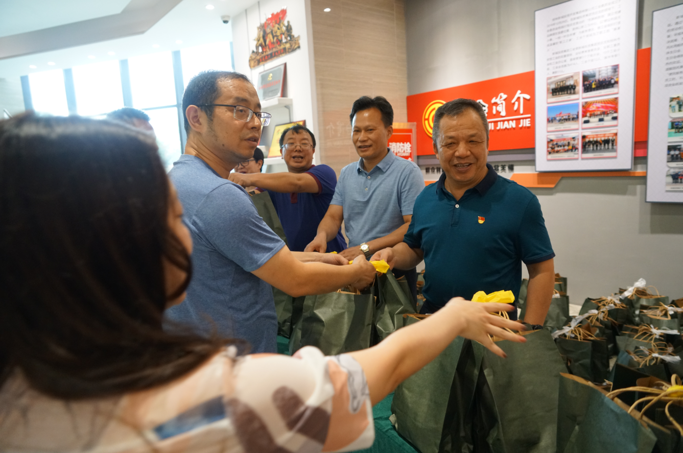 粽香傳真情,關(guān)懷暖人心,一顆顆粽子飽含著公司黨組織和工會(huì)對(duì)會(huì)員的濃濃情意和節(jié)日問候。粽子發(fā)放的各分會(huì)場(chǎng),一袋袋香氣四溢的“暖心”粽被送到一線員工手中,員工們深深體會(huì)到公司對(duì)員工的關(guān)懷?!按蠹倚量嗔恕?,“祝大家端午安康”,“放假在家好好陪家人過個(gè)節(jié)吧”,“感謝大家一直以來為公司發(fā)展所做的努力和付出”……各個(gè)派送粽子的分會(huì)場(chǎng)都愛心滿滿。