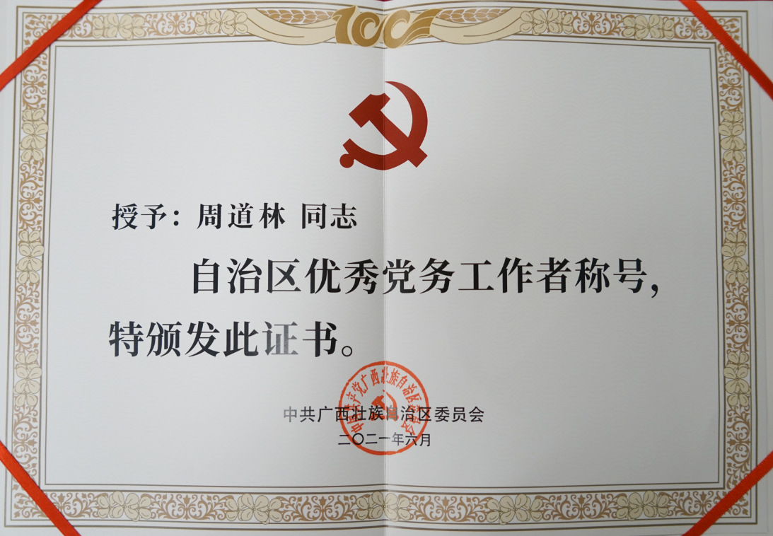 喜報|桂林新城投資集團黨總支書記周道林榮獲“廣西壯族自治區(qū)優(yōu)秀黨務工作者”稱號