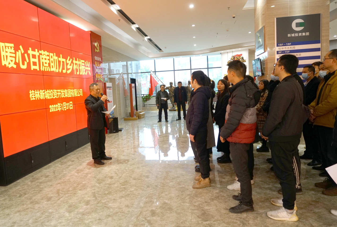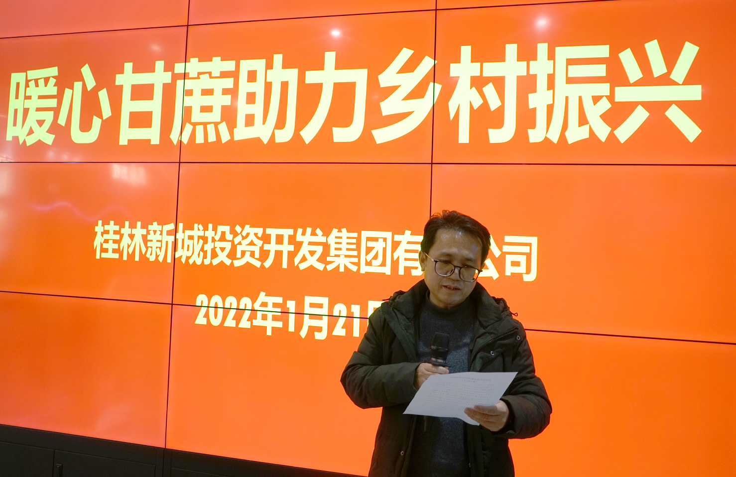2022年1月21日,新城投資集團(tuán)組織開(kāi)展了“暖心甘蔗助力鄉(xiāng)村振興”活動(dòng)。集團(tuán)黨總支書(shū)記、董事長(zhǎng)周道林,五通鎮(zhèn)羅江村黨總支部書(shū)記林次生參加活動(dòng)?;顒?dòng)由集團(tuán)黨總支委員、工會(huì)主席譚力源主持。