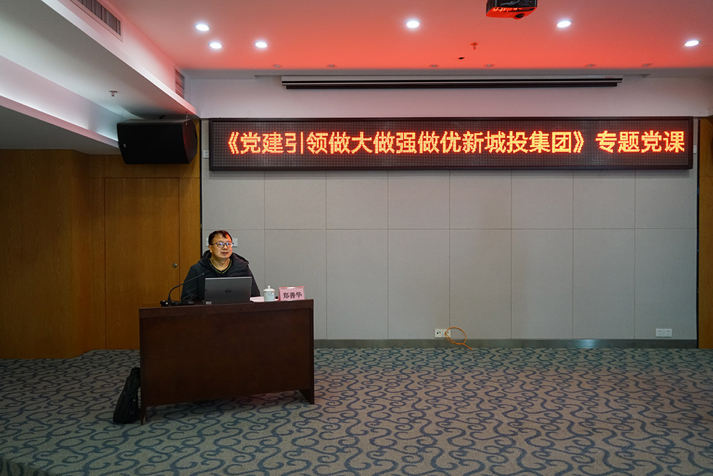 為深入學(xué)習(xí)貫徹習(xí)近平新時(shí)代中國特色社會主義思想,引導(dǎo)黨員干部進(jìn)一步提升思想政治素質(zhì)和貫徹執(zhí)行力,做到學(xué)思用貫通、知信行統(tǒng)一,2023年12月8日上午,城建集團(tuán)副總裁鄭善華以“黨建引領(lǐng)做大做強(qiáng)做優(yōu)新城投集團(tuán)”為題,為新城投集團(tuán)黨員干部上了一堂專題黨課。