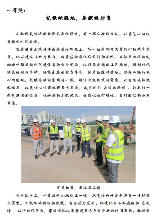 二等獎:唐際晴《黨旗作帆破浪行——桂林學院工地的紅色堡壘》