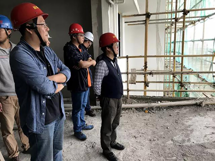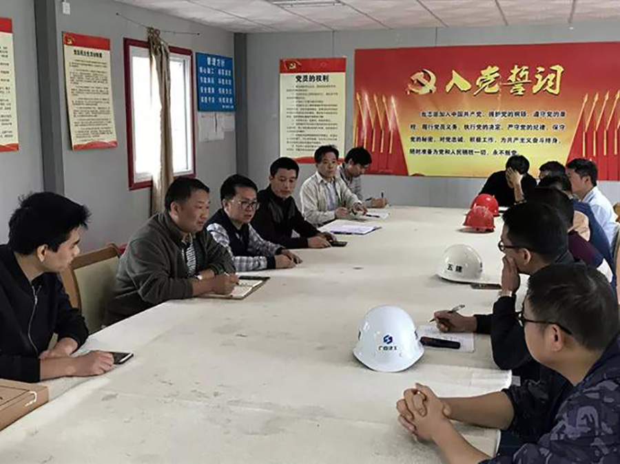圖為譚力源組織項(xiàng)目管理人員和監(jiān)理、施工單位人員開(kāi)展安全檢查