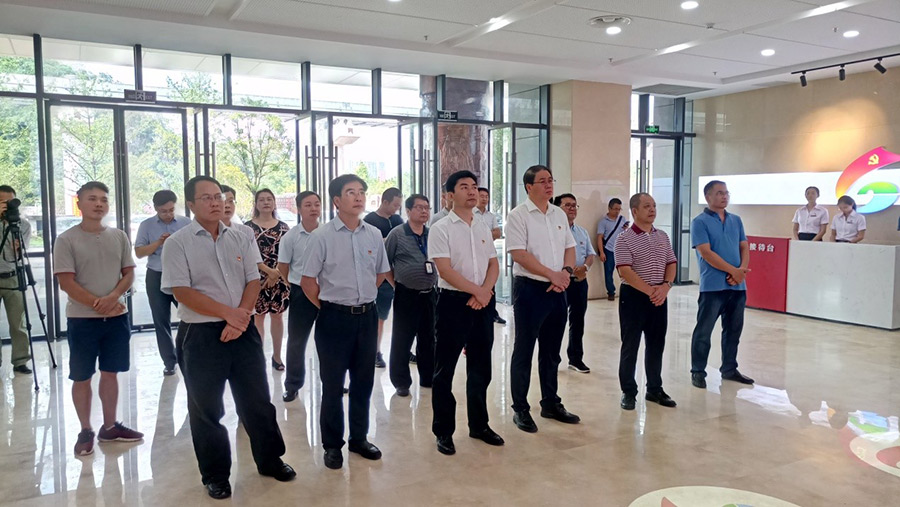 2019年7月1日,在中國共產(chǎn)黨建黨98周年到來之際,桂林市委副書記白松濤一行專程到桂林市黨群服務中心調(diào)研指導試運行情況。市委常委、組織部部長、市黨群服務中心建設工作領導小組組長彭東光陪同調(diào)研。