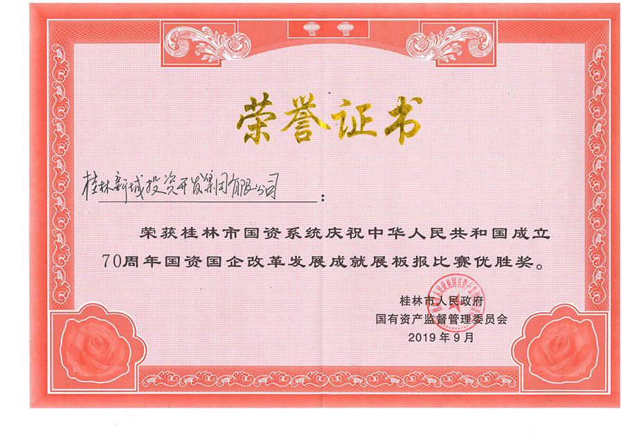 新城投資集團黨總支選送的展板報作品在市國資委主辦桂林市國資系統(tǒng)慶祝中華人民共和國成立70周年國資國企改革發(fā)展成就展板報比賽中脫穎而出。9月21日晚,新城投資集團受邀參加市國資委展板報比賽頒獎儀式,工會主席譚力源代表集團公司出席儀式并領獎。