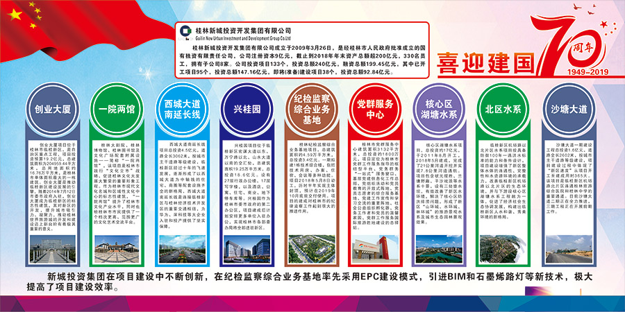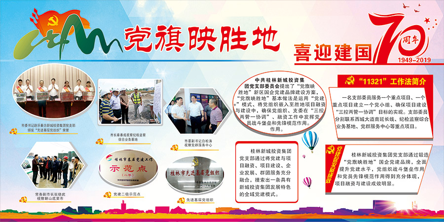 新城投資集團黨總支精心組織選送慶祝中華人民共和國成立70周年國資國企改革發(fā)展成就展板報比賽參賽作品。展板作品充分展現(xiàn)了新城投資集團黨總支在“黨旗映勝地”黨建品牌打造過程中,不忘初心,牢記使命,鍛造“真抓實干強擔當,全力以赴推項目”的項目建設精神;集團黨總支充分運用“全域黨建管控新模式”,創(chuàng)立“11321”工作法解決工地實際難題;在紀檢監(jiān)察綜合業(yè)務基地率先采用EPC建設模式,引進BIM和石墨烯路燈等新技術,極大提高了項目建設效率,譜寫了“新區(qū)騰飛,黨建新篇”。