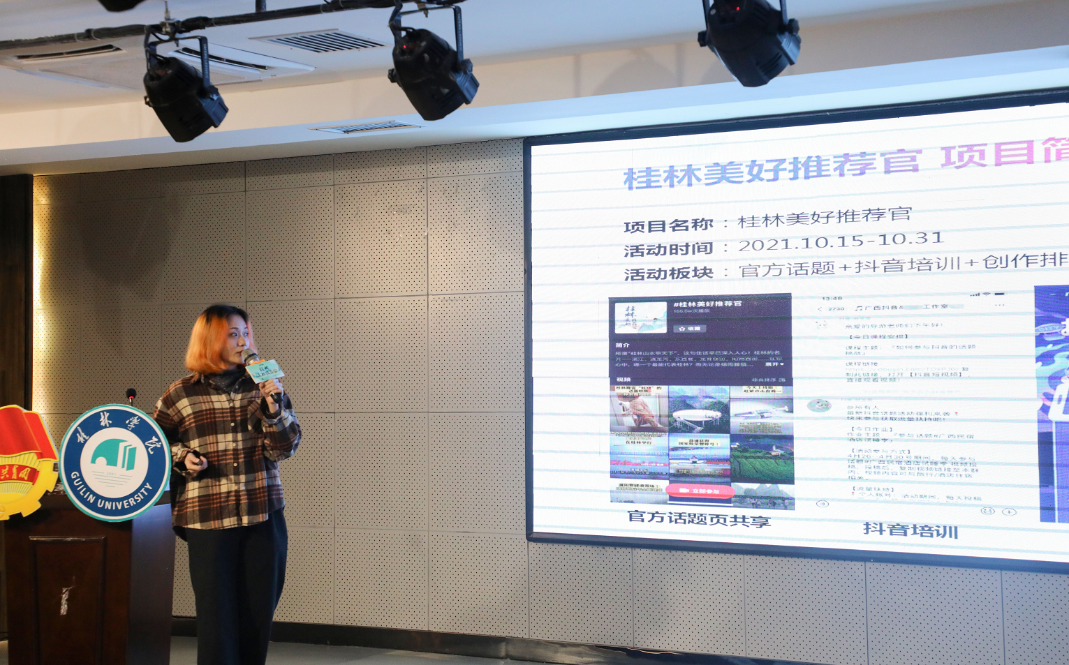 “桂林美好推薦官”話題活動由自治區(qū)文化和旅游廳、共青團廣西壯族自治區(qū)委員會、共青團桂林市委員會、桂林旅游發(fā)展總公司、桂林旅游股份有限公司共同發(fā)起。桂林學(xué)院作為桂林唯一高校承辦了此次線下抖音校園分享會。桂林各高校抖音愛好者代表參加活動。