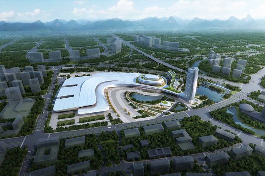目前正在建設(shè)的桂林國際會展中心項目總投資額676016.31萬元。新會展中心以“江作青羅帶”的漓江為藍本,設(shè)計為流水彎彎的“漓江彩帶”形象;會議中心以“漓江石”為模板設(shè)計,寓意“石”來運轉(zhuǎn);四星級酒店則吸收桂林城徽象鼻山的意象進行設(shè)計;設(shè)計了以龍脊梯田為意象的商業(yè)區(qū),以商業(yè)進一步集聚和帶旺新區(qū)人氣等等,從規(guī)劃、選址、設(shè)計上無一不體現(xiàn)出對新會展中心精雕細琢、精益求精的設(shè)計理念和精神理念。