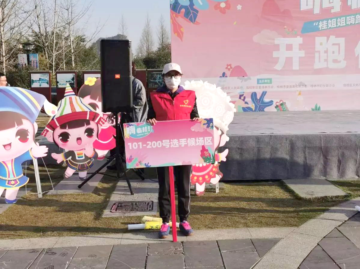 積極分子、共青團(tuán)員參加“嗨?臨桂!”——“女神酷跑”活動(dòng)志愿服務(wù)。