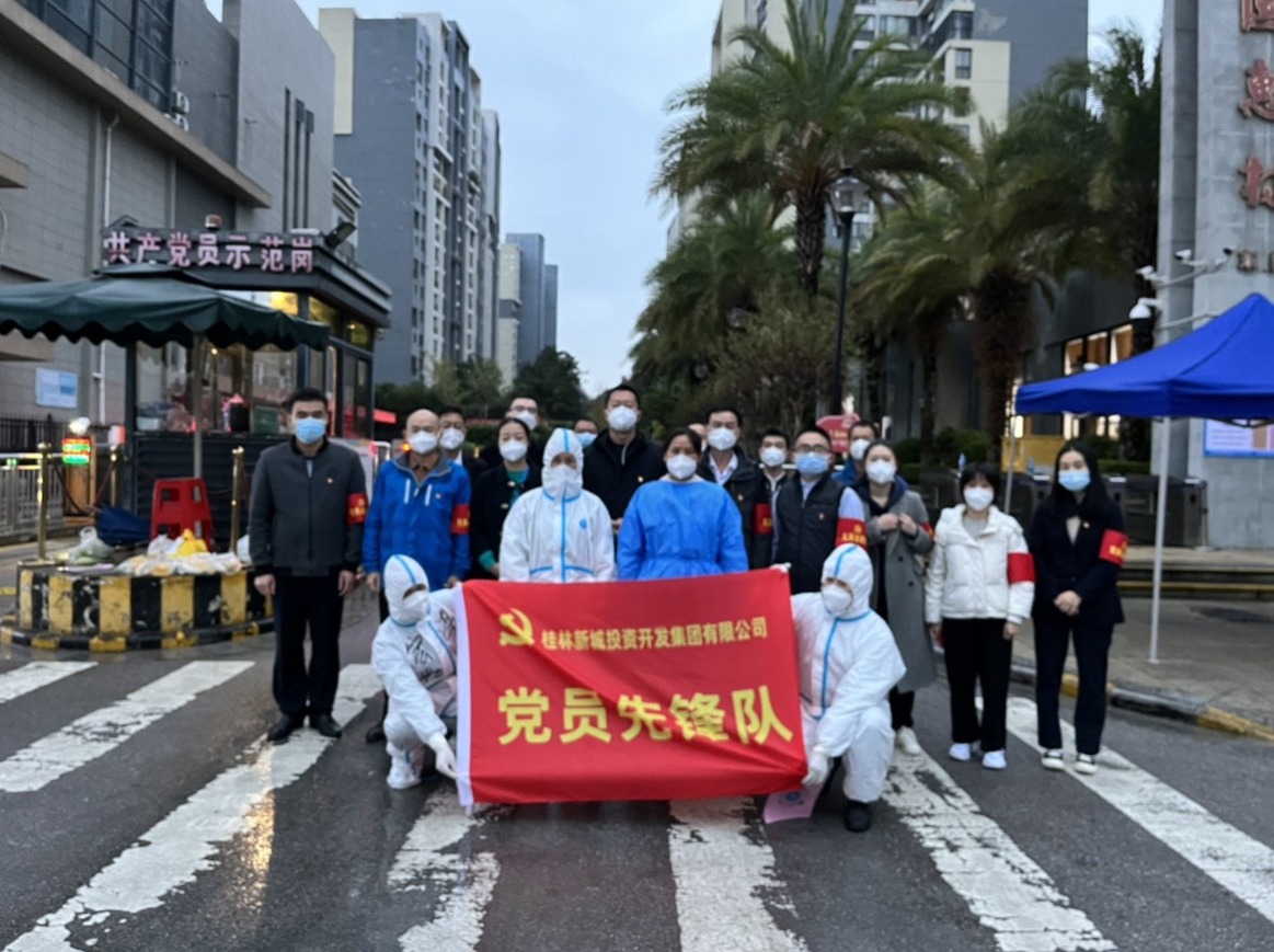 近日,桂林市突發(fā)新冠肺炎疫情,新城投集團(tuán)扎實(shí)貫徹中央、自治區(qū)和市委關(guān)于疫情防控的部署要求,面對(duì)疫情的嚴(yán)峻形勢(shì),引導(dǎo)廣大黨員團(tuán)員青年切實(shí)發(fā)揮先鋒模范作用,全力以赴抓好由新城投包聯(lián)責(zé)任小區(qū)的疫情防控工作。