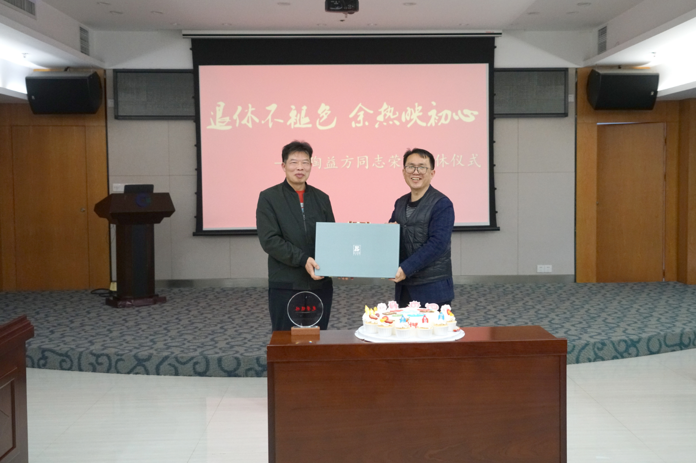 隨后,集團(tuán)公司領(lǐng)導(dǎo)向陶益方同志贈(zèng)送退休禮物、相冊(cè)及鮮花,切蛋糕并合影留念。