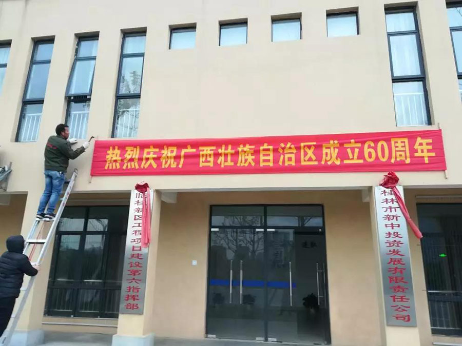 新城投資集團在臨桂市民公園、新城國奧小區(qū)、湖塘水系、水一坊,新城商務酒店等地懸掛彩旗燈籠,喜迎改革開放40周年、自治區(qū)成立60周年這一盛大節(jié)日。