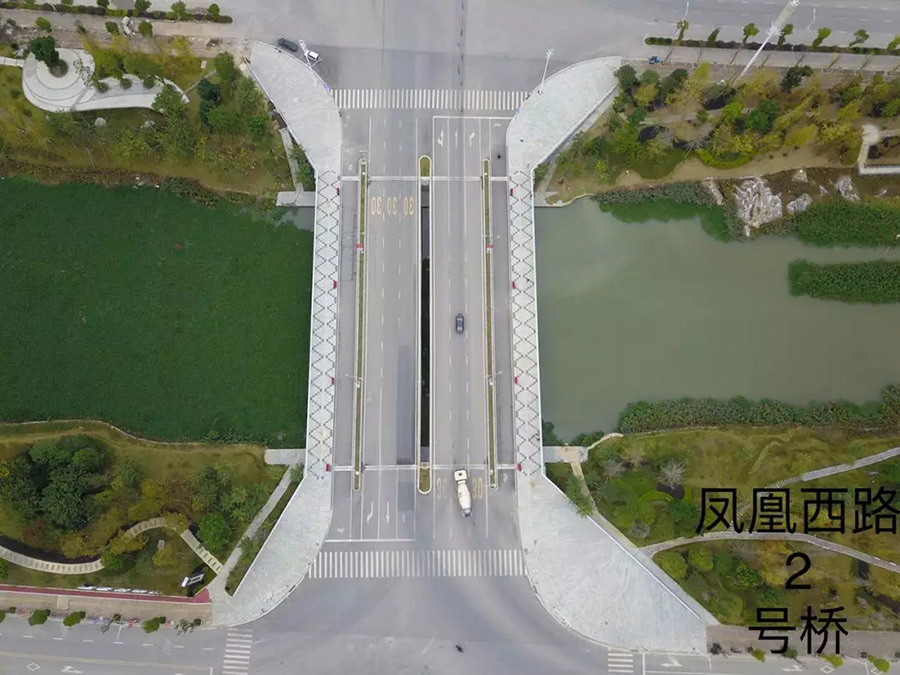 鳳凰西路二號(hào)橋位于鳳凰西路與萬(wàn)平路、秧一路之間,跨越臨桂新區(qū)蘭塘河水系,是連接西城區(qū)的重要通道,橋梁結(jié)構(gòu)采用三跨鋼筋砼梁拱組合體系橋,長(zhǎng)度為70米,寬度為50米。該工程于2016年11月開(kāi)工建設(shè),于2018年3月27日完成初步驗(yàn)收。