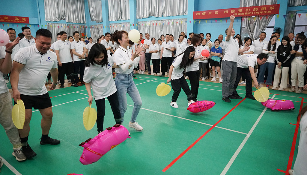 在目睹了兩場(chǎng)賽事的視覺(jué)盛宴后,職工們都躍躍欲試,迫不及待地參加集體團(tuán)建活動(dòng)?!皟扇巳憬恿s豬”游戲考驗(yàn)隊(duì)員們的協(xié)調(diào)性、敏捷性和團(tuán)隊(duì)合作意識(shí),集團(tuán)領(lǐng)導(dǎo)班子成員何萌與同伴一道齊心協(xié)力,順利完成比賽;“聽口令做動(dòng)作”游戲考驗(yàn)的是專注力、反應(yīng)力和身體協(xié)調(diào)性,集團(tuán)領(lǐng)導(dǎo)班子成員劉敏在這個(gè)環(huán)節(jié)展現(xiàn)了一定的實(shí)力;“瞎子摸魚”游戲側(cè)重考驗(yàn)職工的觀察力、反應(yīng)力和團(tuán)隊(duì)合作能力,對(duì)體能也有一定的要求,跑得慢的“魚”,將迎強(qiáng)壯“瞎子”的當(dāng)頭一棒,與生俱來(lái)的逃生欲讓游戲變得緊張刺激而又滑稽。輕松愉悅的活動(dòng)氛圍讓大家沉浸其中,現(xiàn)場(chǎng)充滿了歡聲笑語(yǔ),洋溢著喜慶的氣氛。