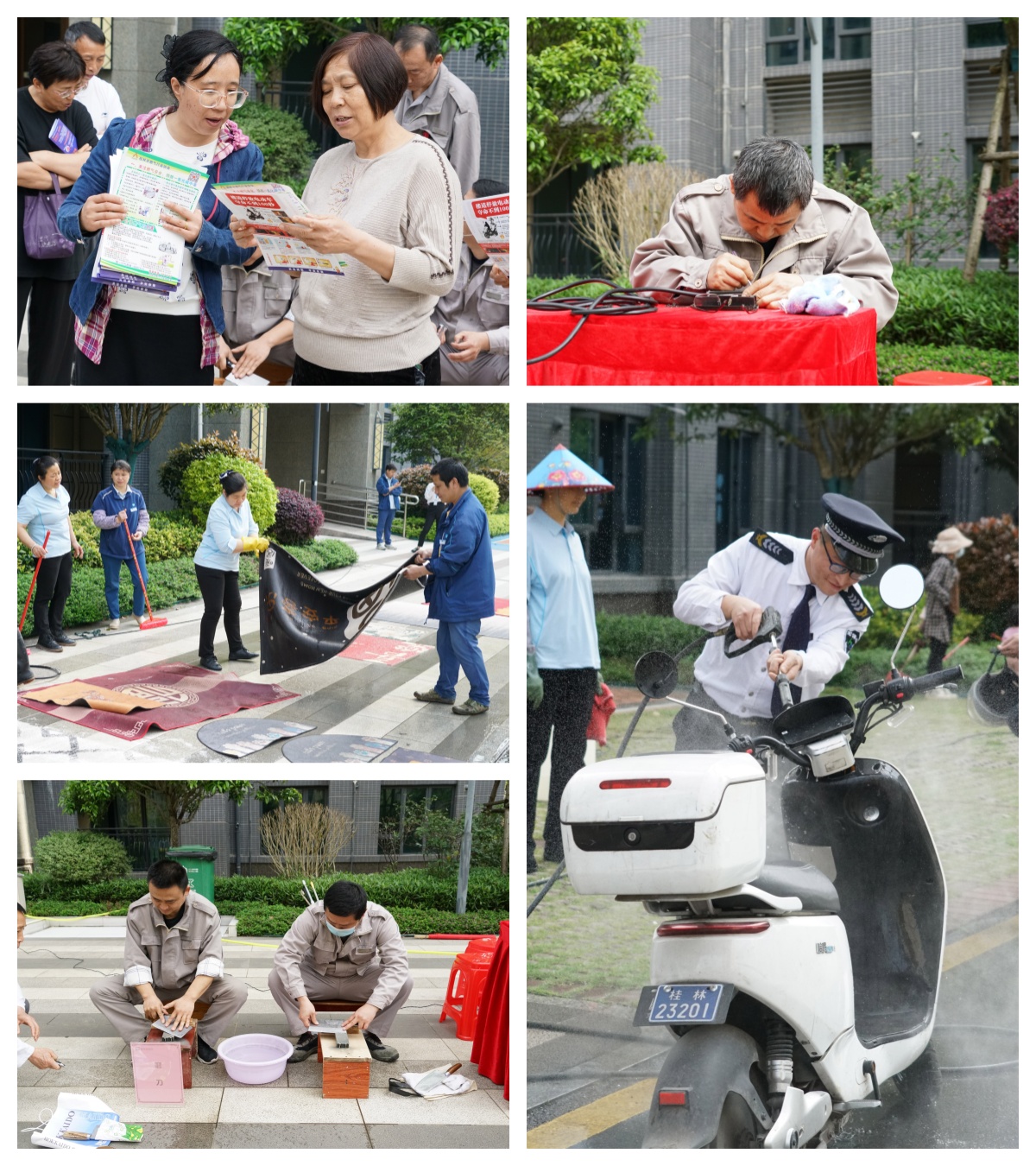 志愿者們向小區(qū)居民發(fā)放宣傳單,宣傳消防安全、防電信詐騙等知識(shí),提醒大家在日常生活中規(guī)范使用燃?xì)狻⒂行蛲7烹妴诬?chē),讓廣大居民更好地了解最近的電信詐騙手段和方式以及如何預(yù)防詐騙的常識(shí)。活動(dòng)現(xiàn)場(chǎng)還免費(fèi)提供家用小家電維修、愛(ài)心磨刀、清洗電單車(chē)、地墊清洗等服務(wù),小區(qū)居民參與熱情高漲,志愿服務(wù)贏得一致好評(píng)。一位來(lái)自呼倫貝爾市的大媽主動(dòng)找到戴黨徽的同志,深情地說(shuō):“黨員來(lái)了,我們的生活就充滿(mǎn)希望了,一名黨員就是一面旗幟,一個(gè)支部就是一座堡壘”。