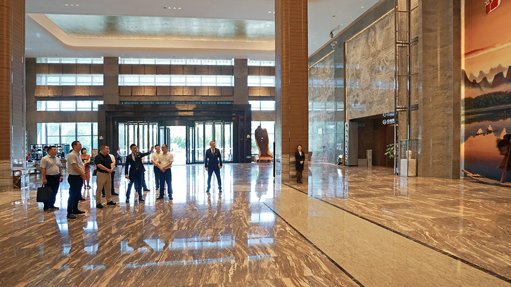 當(dāng)天下午,陶毅一行來到宏謀大酒店進(jìn)行調(diào)研,從酒店大堂開始,了解酒店的文化特色、經(jīng)營(yíng)狀況、設(shè)備實(shí)施維護(hù)狀況,對(duì)各重點(diǎn)區(qū)域和各種客房房型進(jìn)行了全面的走訪調(diào)研。隨后在宏謀大酒店會(huì)議室,聽取了新城投集團(tuán)下屬宏謀酒管公司和宏謀城運(yùn)公司做的工作報(bào)告。