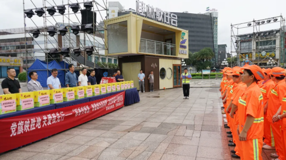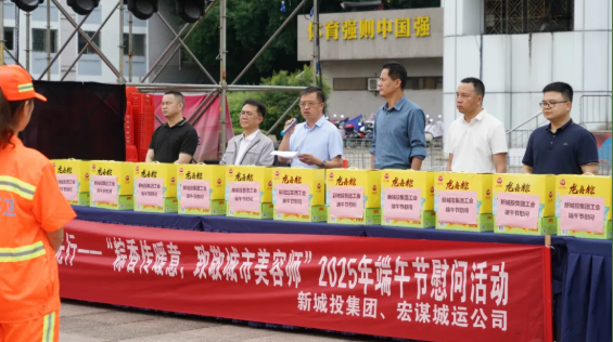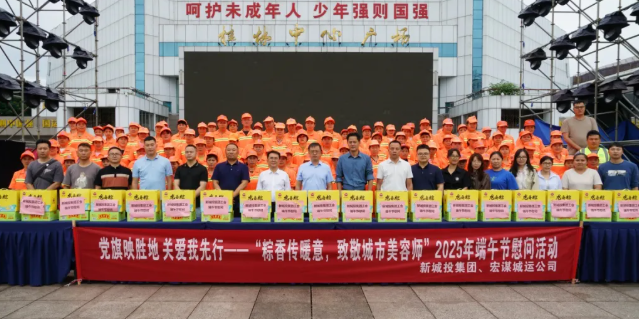 黨旗映勝地 關(guān)愛我先行——新城投集團(tuán)聯(lián)合宏謀城運(yùn)公司開展“粽香傳暖意,致敬城市美容師”2025年端午節(jié)慰問活動(dòng)
