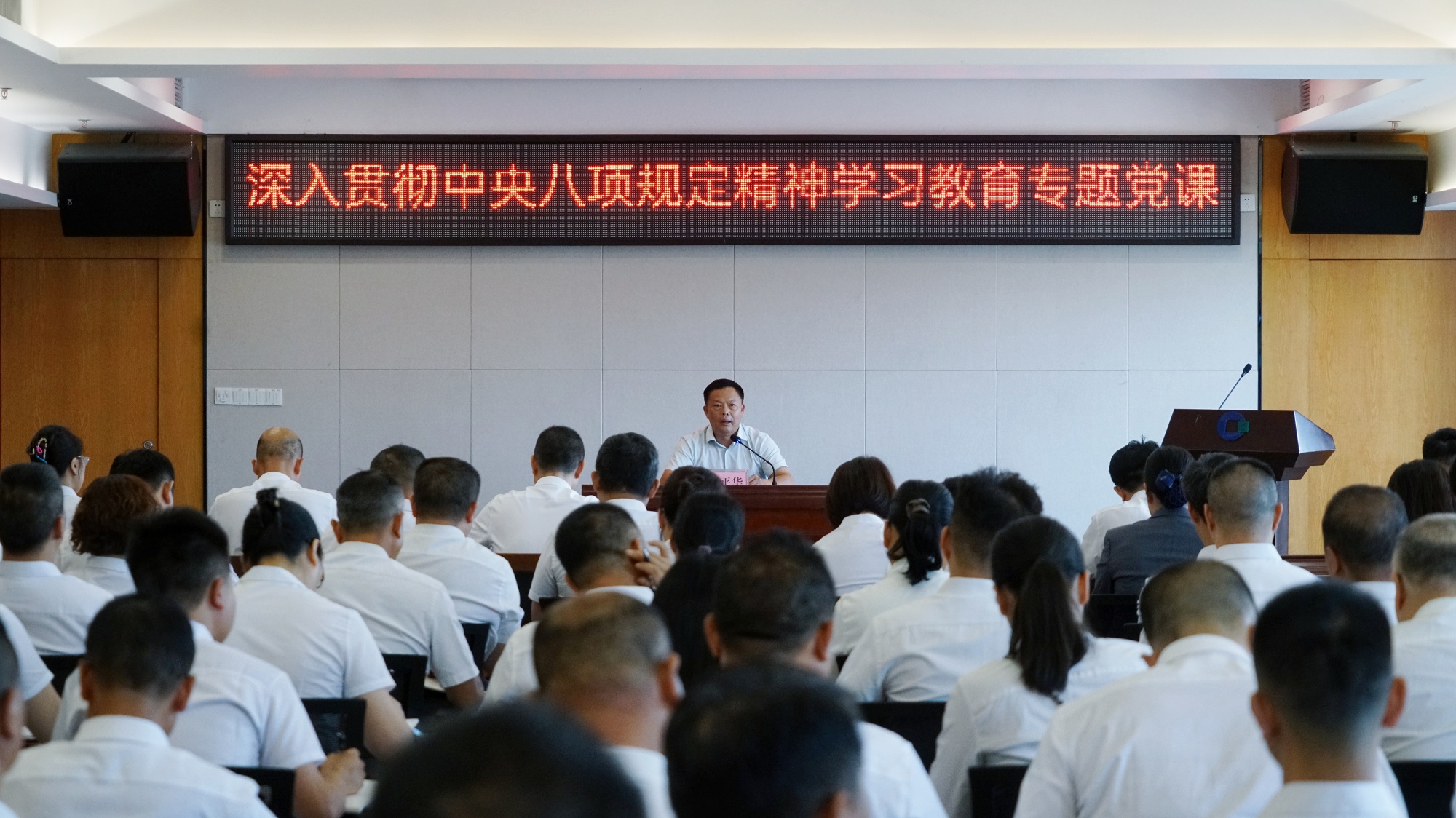 為扎實(shí)開展深入貫徹中央八項(xiàng)規(guī)定精神學(xué)習(xí)教育,進(jìn)一步提升黨員干部紀(jì)律意識(shí),強(qiáng)化作風(fēng)建設(shè),2025 年 6 月 25 日下午,市國(guó)資委黨委書記、主任蔣平華為集團(tuán)全體黨員及中層以上管理干部授課。