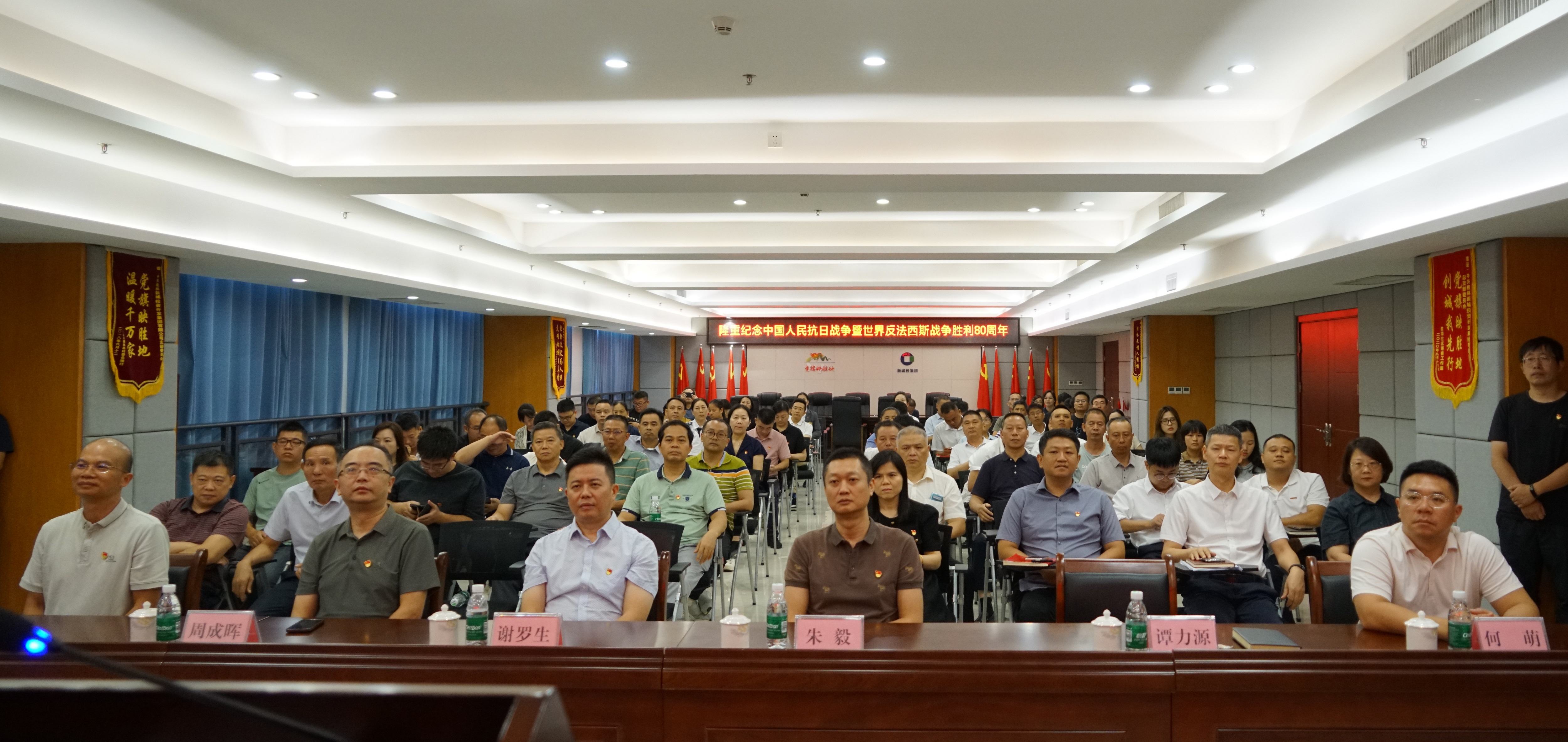 2025年9月3日上午,紀(jì)念中國(guó)人民抗日戰(zhàn)爭(zhēng)暨世界反法西斯戰(zhàn)爭(zhēng)勝利80周年大會(huì)在北京天安門廣場(chǎng)隆重舉行,新城投集團(tuán)與結(jié)對(duì)共建單位廣西實(shí)體經(jīng)濟(jì)服務(wù)員工作隊(duì)駐桂林市工作隊(duì)在新城投集團(tuán)1001會(huì)議室共同組織觀看直播。工作隊(duì)職工、新城投集團(tuán)領(lǐng)導(dǎo)班子、全體黨員、中層及以上管理干部參加活動(dòng)。